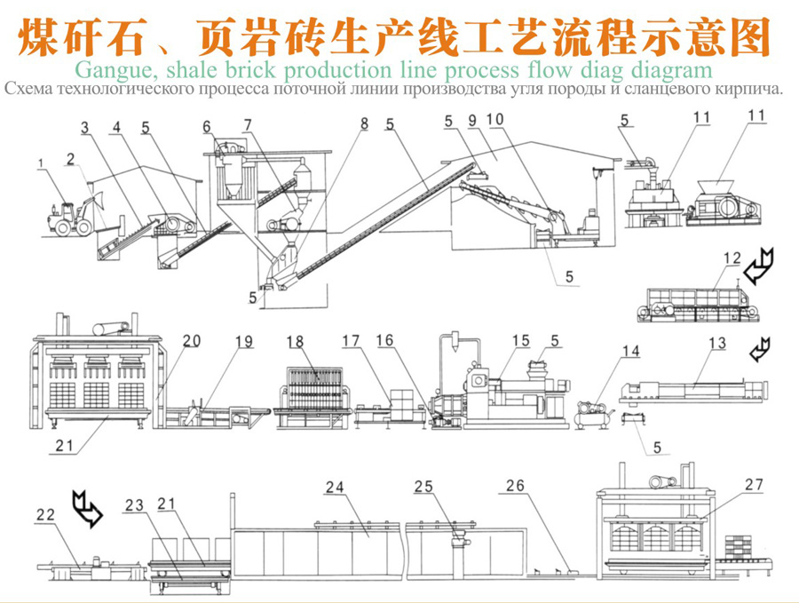 煤矸石、页岩砖生产线流程示意图