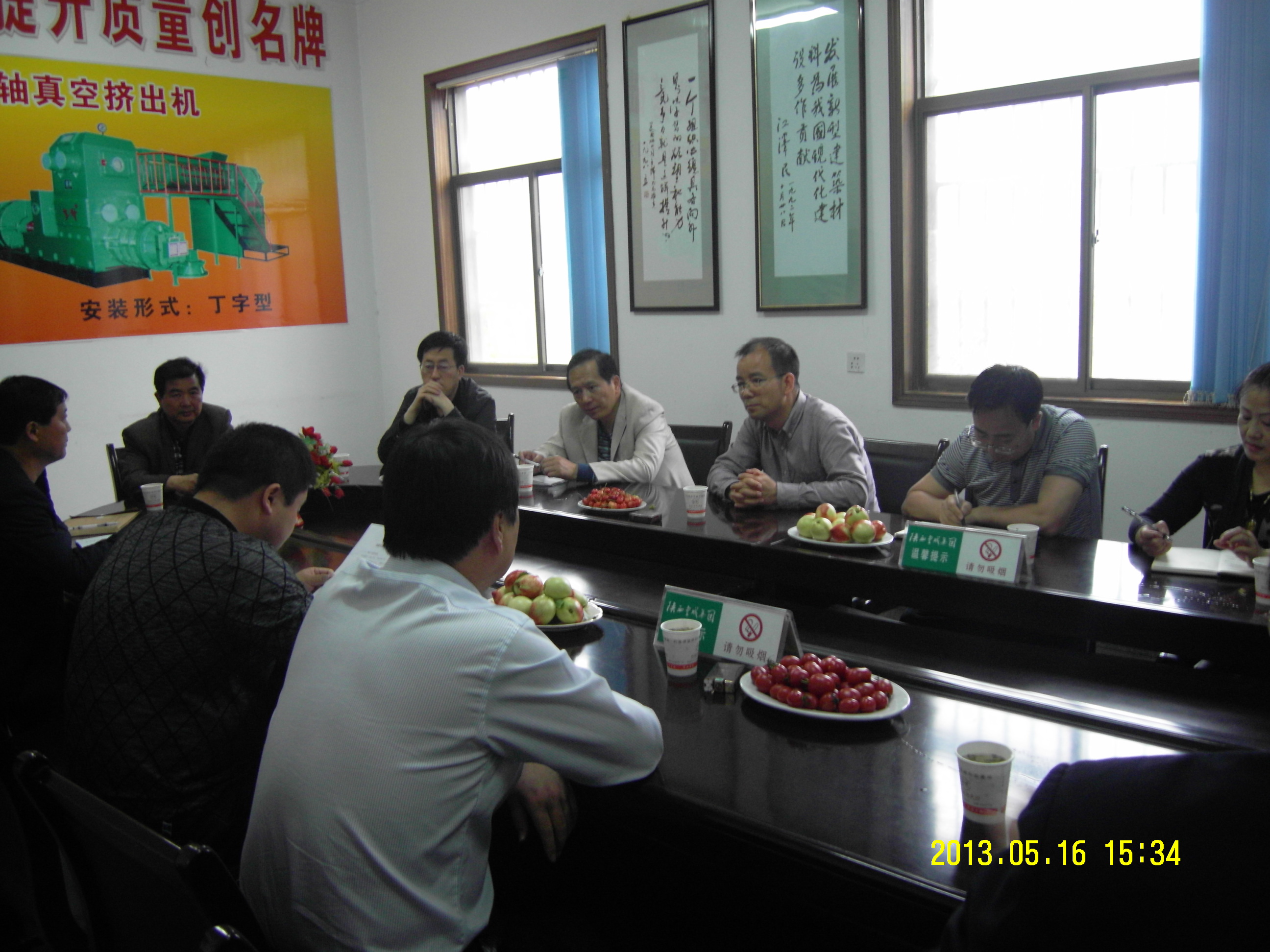 郭亮先生与球速(中国)销售公司刘恩仓先生和来厂购置设备的外国客商在一起