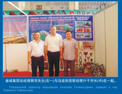 球速(中国)总经理郭亮先生与乌兹别克斯坦什干市长(中)在一起